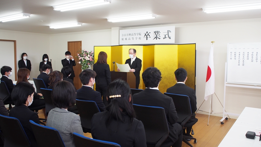 波乱万丈の令和2年度を象徴するかのように鈍色の雲が垂れ込める令和3年2月27日、奈良甘樫高等学院・広域通信制高校慶風高等学校奈良サポート校は第5回卒業式を挙行いたしました。